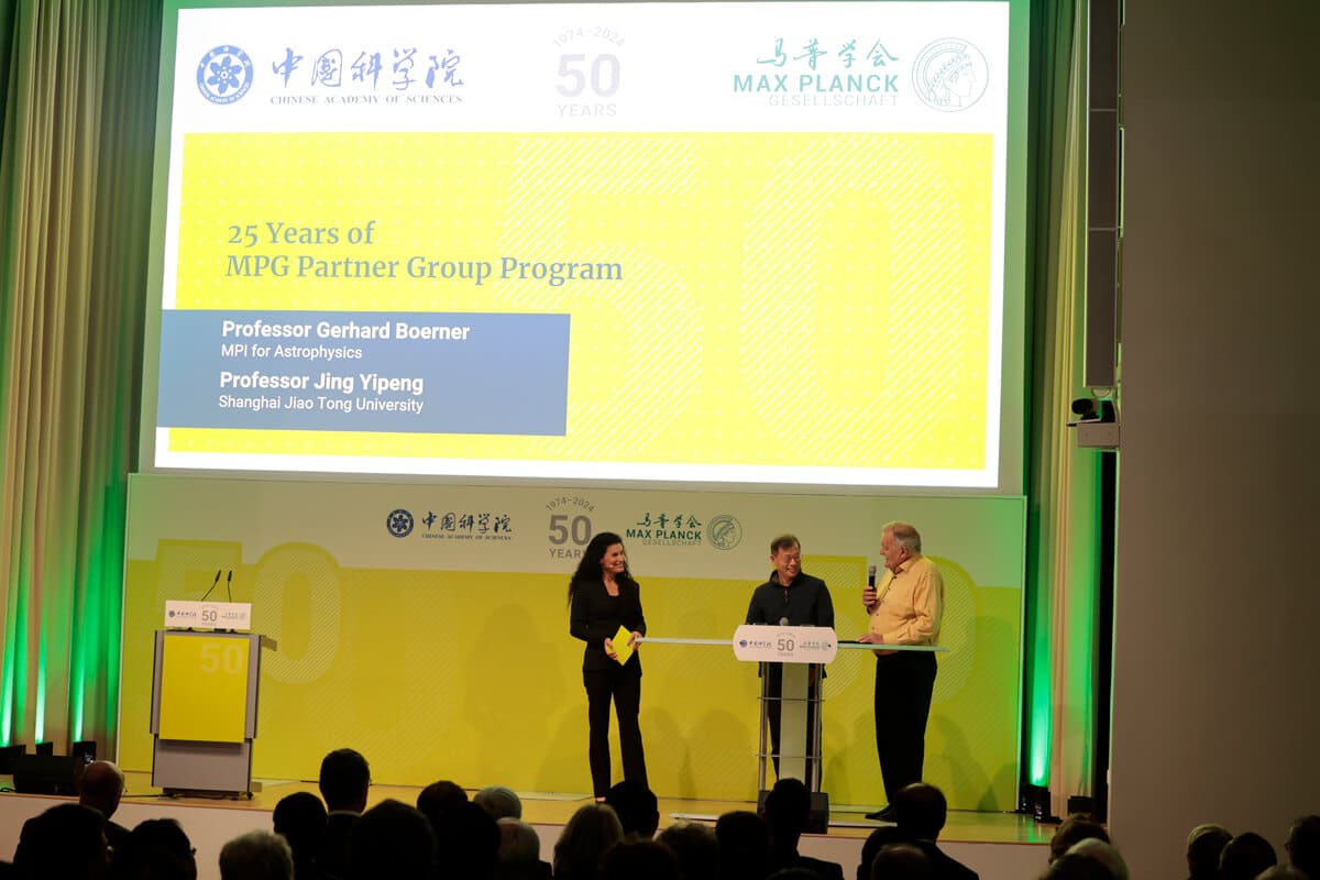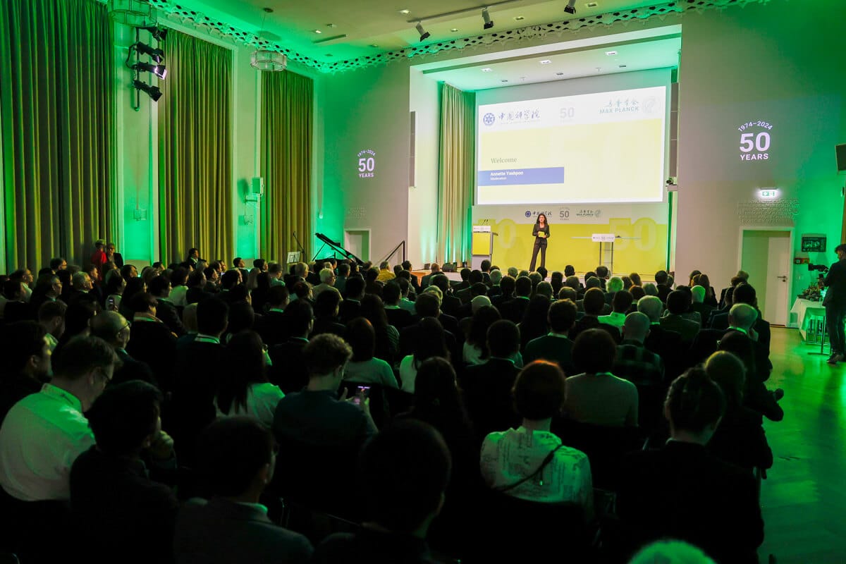 …und steht dann auf und wechselt nahtlos zur Moderatorin, um die Veranstaltung in Englisch, Deutsch oder Französisch zu begleiten.